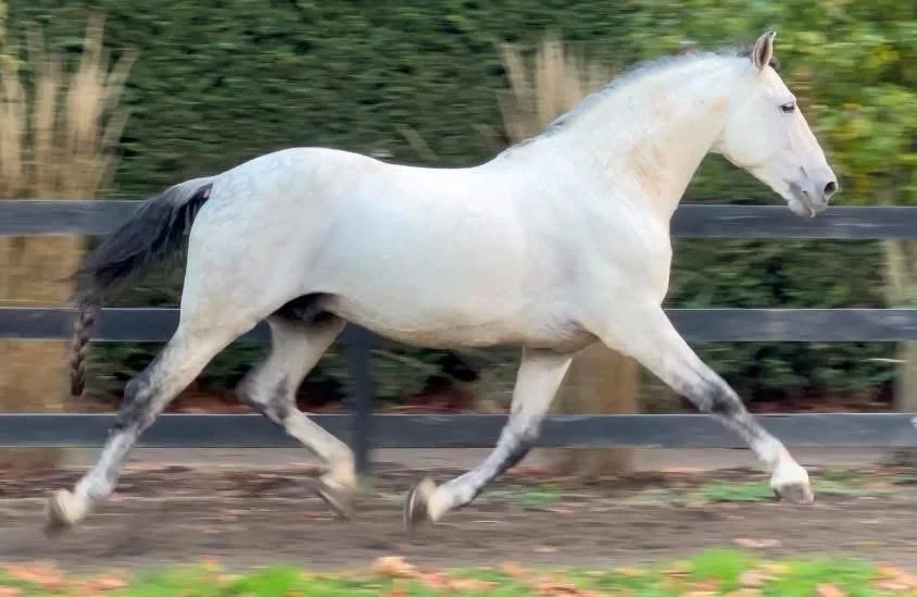 Valentino DEA combines modern athleticism with an exceptional temperament — a tall, long-legged stallion with three outstanding gaits and the versatility to shine both in the arena and on the trail. Whether navigating woodland bridges or performing in a dressage ring, Valentino shows the kind of level-headed loyalty that every rider values.